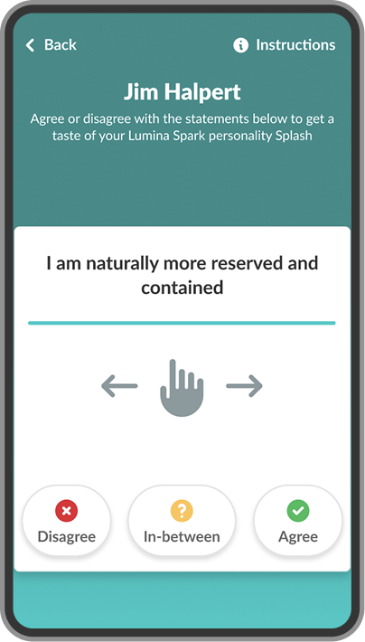 “I like the way that the Lumina Splash app has been introduced – it’s very modern, it’s dynamic, and it enables you to introduce Lumina Spark with different populations from large groups through one-to-one sessions.”